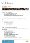 Flier created for one of the OIT Meet and Greets using a template provided by OIT for layout. I changed header photo as well as included all content. Content covers reserving labs and Insight software (front) and on the back, other services and software provided by Labs.