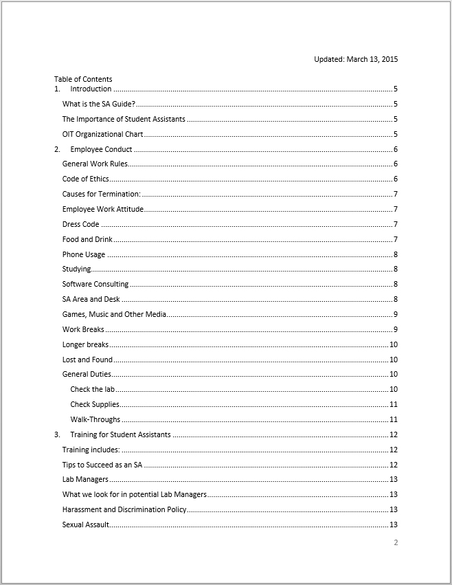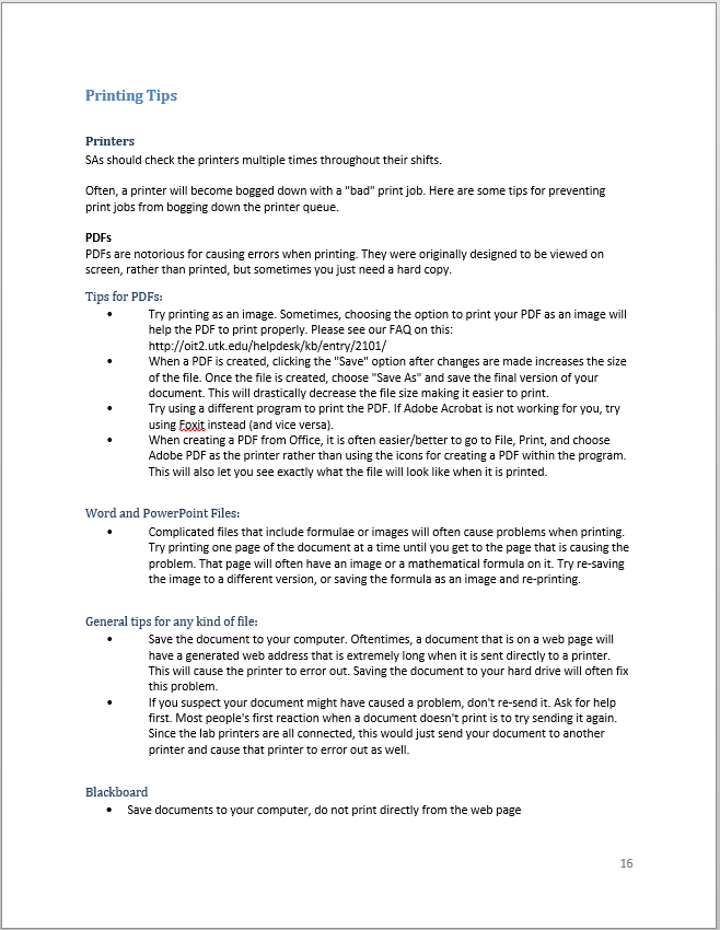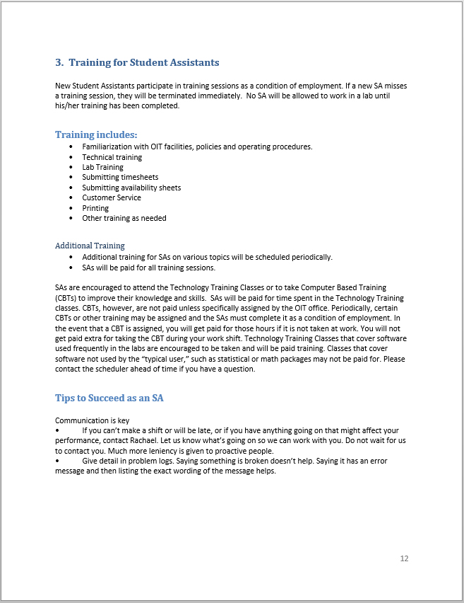 A link to the guide for Student Assistants in the OIT computer labs covering employment responsibilities, software support, and more.