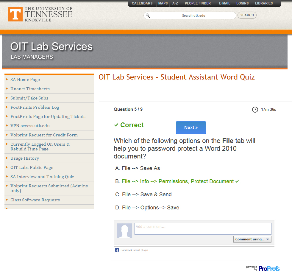 In order to improve the quality of students we hire as well as better train our current students, I have created a number of quizzes covering software, customer service, and other topics covered in our training sessions for new employees.