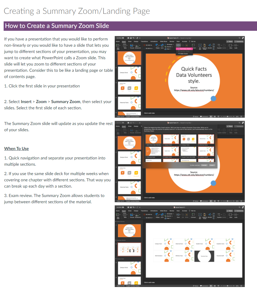 Note: Links will only work for individuals with University of Tennessee access. Example screenshots are included here. Images were created in collaboration with graphic designers.